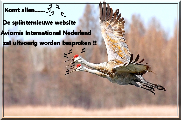 Dhr. Robert Hauwert zal die avond een uitgebreide uiteenzetting geven over de gloednieuwe website van Aviornis International Nederland, waarover u allemaal al eerder een brief van het hoofdbestuur hebt gekregen. Ik ben mij er van bewust, dat deze aankondiging nogal wat vroegtijdig wordt weergegeven. Maar om u allemaal enthousiast te gaan maken kun je niet vroeg genoeg beginnen! Bijeenkomst op 9 april a.s. !! Later hierover meer!